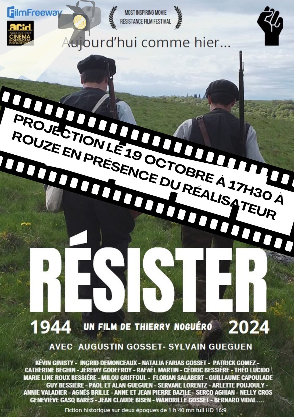Venez assister à la projection du film Résister : Dimanche 19 octobre 2025 dans la salle polyvalente de Rouze à partir de 17 h 30